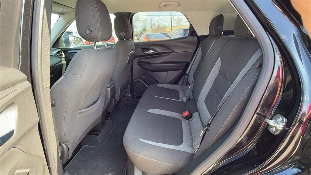 This 2025 Chevrolet TrailBlazer LS in Mosaic Black Metallic comes with the following features: 1.2L Ecotec Turbo DOHC DI w/VVT CVT FWD LS Confidence Package (Lane Change Alert with Side Blind Zone Alert, Rear Cross Traffic Alert, and Rear Park Assist), LS Convenience Package (Rear Windows and Liftgate Deep-Tinted Glass and Remote Start), Preferred Equipment Group 1LS, 1 Type-An and 1 Type-C USB Ports, 4 Speakers, 4-Speaker Audio System Feature, 4-Way Manual Front Passenger Seat Adjuster, 4-Wheel Disc Brakes, 5.45 Final Drive Axle Ratio, 6-Way Manual Driver Seat Adjuster, ABS brakes, Air Conditioning, Alloy wheels, AM/FM radio: SiriusXM, Auto High-beam Headlights, Brake assist, Bumpers: body-color, Cloth Seat Trim, Compass, Delay-off headlights, Driver door bin, Driver vanity mirror, Dual front impact airbags, Dual front side impact airbags, Electronic Stability Control, Emergency communication system: OnStar and Chevrolet connected services capable, Exterior Parking Camera Rear, Flat-Folding Front Passenger Seatback, Front anti-roll bar, Front Bucket Seats, Front Center Armrest, Front License Plate Bracket, Front reading lights, Front wheel independent suspension, Fully automatic headlights, Illuminated entry, Knee airbag, Low tire pressure warning, Occupant sensing airbag, Overhead airbag, Overhead console, Panic alarm, Passenger door bin, Passenger vanity mirror, Power door mirrors, Power steering, Power windows, Radio data system, Radio: AM/FM Stereo Audio System, Rear side impact airbag, Rear window defroster, Rear window wiper, Remote keyless entry, Ride and Handling Suspension, Security system, SiriusXM Trial Subscription, Speed control, Split folding rear seat, Spoiler, Steering wheel mounted audio controls, Tachometer, Telescoping steering wheel, Tilt steering wheel, Traction control, Trip computer, Variably intermittent wipers, Wheels: 17 Silver-Painted Aluminum, and Wireless Apple CarPlay/Android Auto. 2025 Chevrolet TrailBlazer LS